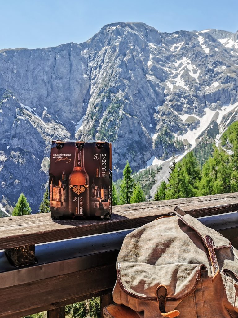 Die Ostpreußenhütte zeichnet sich durch eine hervorragende Küche sowie durch einen wunderbaren Blick auf das Hochkönigsmassiv aus. Für den perfekten Moment fehlte dem Einsender des Fotos nur EINES. Davon hatte er aber sicherheitshalber gleich ein ganzes Sixpack im Rucksack!
