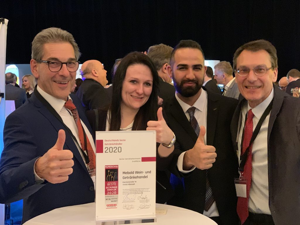 Die Firma Mebold Wein- und Getränkehandels GmbH wurde am 27. Februar in Berlin als „Bester Getränkefachmarkt Deutschlands 2020“ ausgezeichnet.